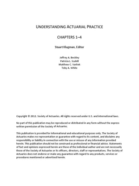 Read KLUGMAN UNDERSTANDING ACTUARIAL PRACTICE Doc Internet Archive